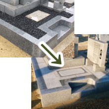 ※既存施工に合わせて張り合わせしますが、既存石碑巻石などが傾いている場合、段差が生じる場合がございます。