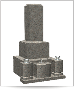 ・神道の方の基本的な形で、軸石は剣の形をあしらい、八足台を備えています。